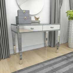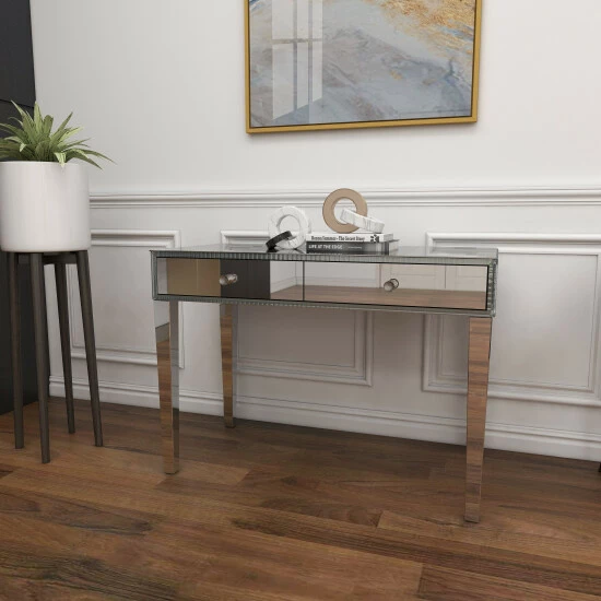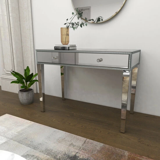 Complete the stunning look of this console table for living room by adding a stylish decor such as table clock or small plant on top. Bring a finishing touch to your home with an inviting appeal with this console table. A sturdy and long lasting construction that for a years of enjoyment. Designed with rubber stoppers at the base that prevent sliding around as well as scratching the floor. This silver mirror console table comes with 2 rectangular drawers that can accommodate up to 25 lbs capacity. Suitable for indoor use only. Maximum weight limit is 100 lbs. Glam inspired.