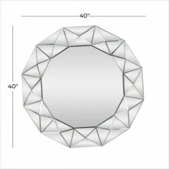 - Large geometric wall mirror measures 39.5″L x 1″W x 39.5″ and weighs 25 lbs.