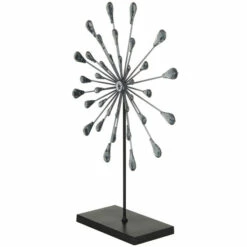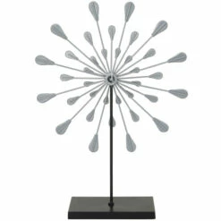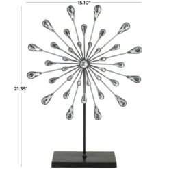 - Our lavish starburst sculpture showcases a collection of teardrop-shaped acrylic drops with a round accent jeweled center and a sturdy metal body with a rectangular base stand