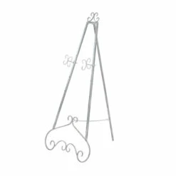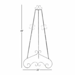 Cast some magic spells and silvery fairy dust sparkles into your art rooms and house balconies by adding this traditional, gray floor-length iron metal easel into your oil painting canvas and charcoal sketches. Intricately crafted to perfection, this delicate metal easel comes in a distressed gray finish, and three vertical rods with scroll detailing on both legs and its holders. Their elegant and rustic exterior is comprised of solid iron material, offering durability and stylish functionality to any room and home interior space. This item ships in 1 carton. Suitable for indoor use only. Made in India. Traditional theme.