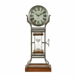 This rustic style inspired design gray iron and wood timer clock will give your rustic style space a timeless vibe when displayed on tables or surfaces. Placed on your console or coffee table, this table clock is sure to be a timeless addition to your home or office. Placed on your office or library shelves, tables, or consoles, this clock is sure make you on time for a style home. Requires 1 AA batteries. Not Included. This item comes shipped in one carton. Easy-to-read Roman numerals on a white clockface. The clock mechanism runs silent. Suitable for indoor use only. Rustic design.