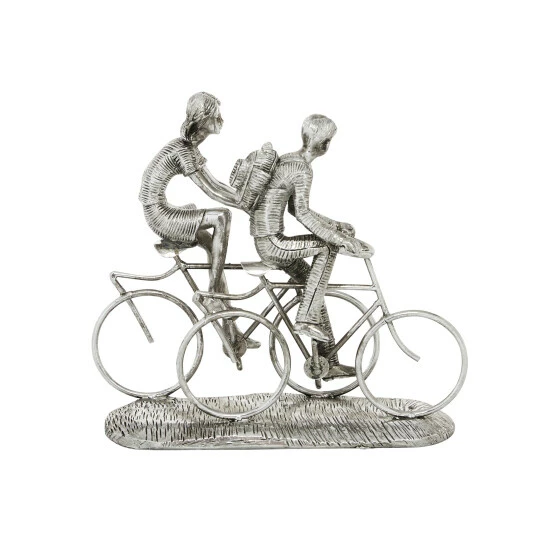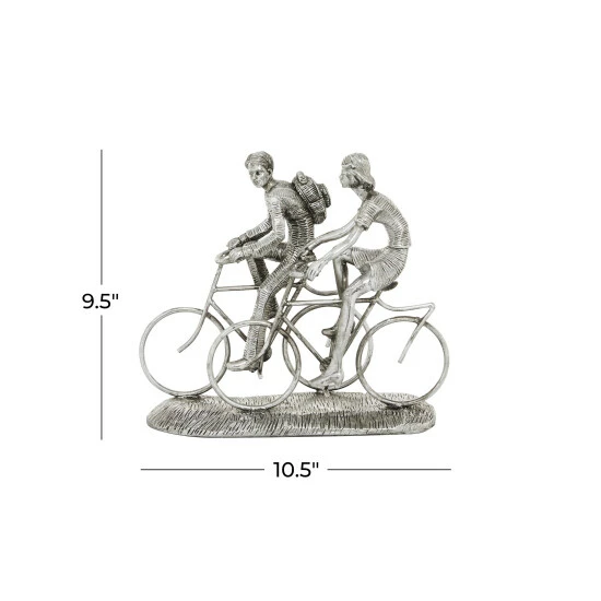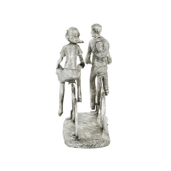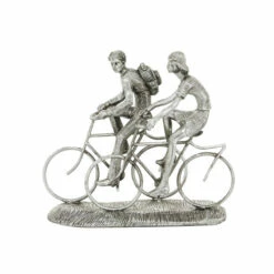 - Cyclists sculpture is made from durable polystone material