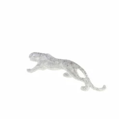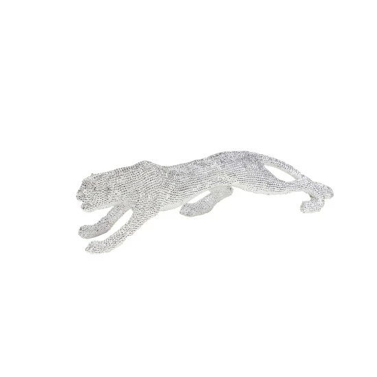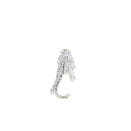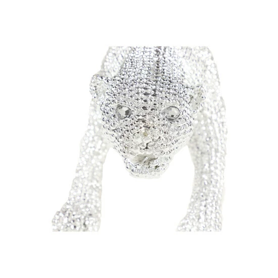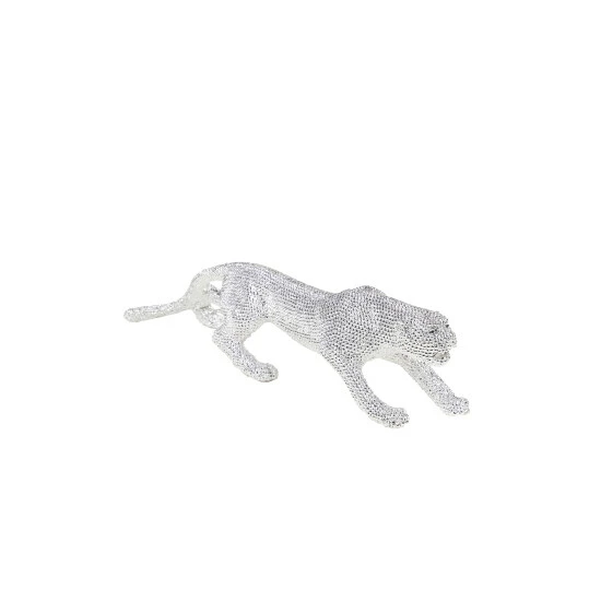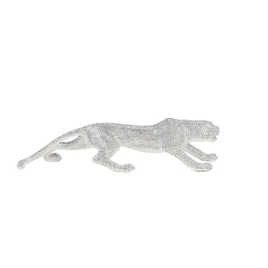 Complement your unique, glam style with this glitzy leopard sculpture. Made of resin with a highly reflective metallic silver finish, this leopard features hundreds of indentations, giving it a spotted look. The design is completed with beautiful rhinestone eyes.