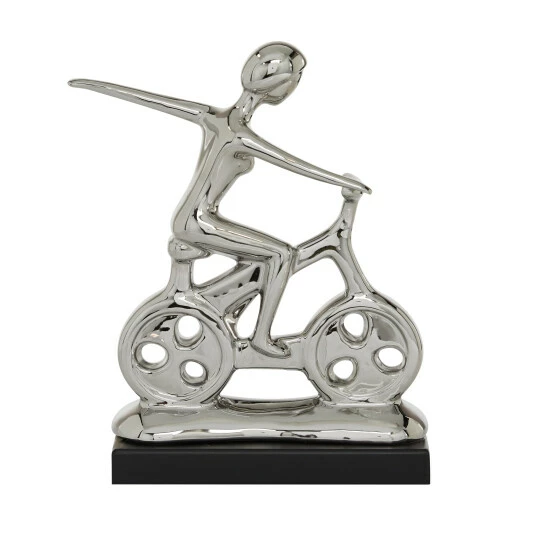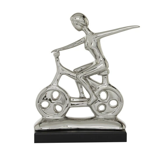 - Add a charming accent piece with a playful cyclist figure featuring a glistening look to give character to your contemporary home