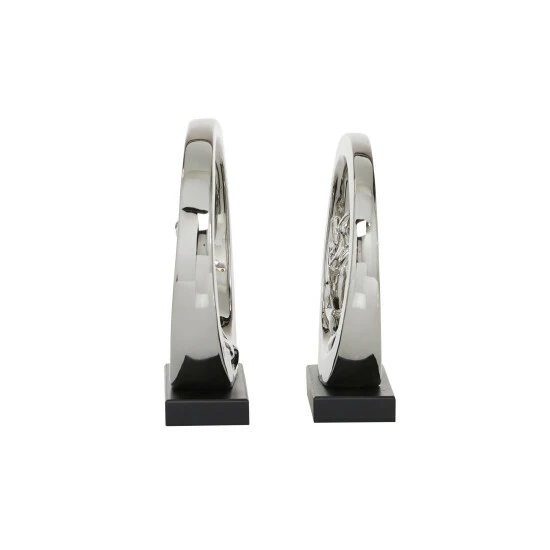 - This delicate circular sculpture features a polished silver finish and matte black base