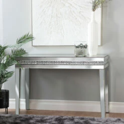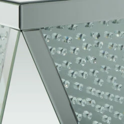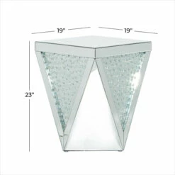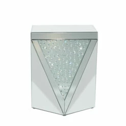 - This silver geometric mirrored side table comes in a sophisticated silver finish that suits any glam-inspired interior design