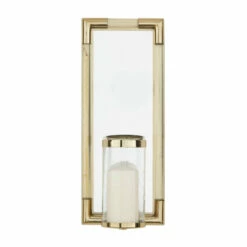 - Candle wall sconce features wide back plate with deep cylindrical glass sleeve for protective holds
