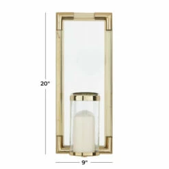 Light up your hallways with this wall sconce candle holder to bring together the contemporary theme of your indoor aesthetics. Decorate your open wall space with this stylish wall sconce for a radiant glow. Create an excellent focal point on your walls paired with some cute accent tables, and level up your home with this amazing wall decor. Furnished with a cylinder glass that holds one candle. This item comes shipped in one carton. Easy to display with back keyhole hanging hardware. Suitable for indoor use only. Made in India. Contemporary design.