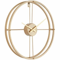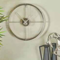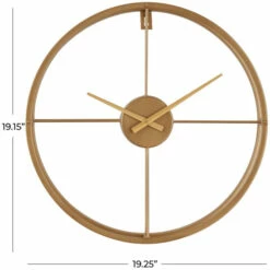 Display this round wall clock above your mantel or create a gallery moment in your entrance with brass colored decor and soft abstract art pieces. Requires 1 AA battery. Battery not included. This item ships in 1 carton. Gold or Silver metal wall clock with open and numberless clock face. The clock mechanism runs silent. Decorative wall clock comes with a keyhole hardware at the back for a vertical hang; nails and screws are not included. Suitable for indoor use only. Made in India. Glam style.