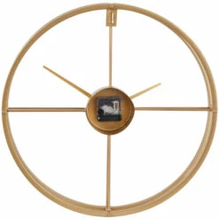 - Round framed wall clock carries an all over dark gold or silver with a polished finish