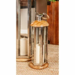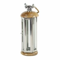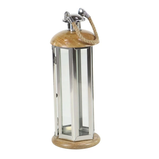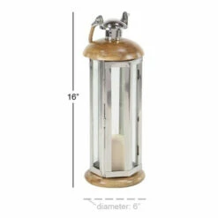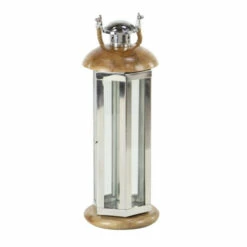 Add a touch of traditional charm to your home ensemble with this stunning candle lantern from Studio 350. Featuring a cylindrical, multi-faceted silver frame with clear side panels, a dome-shaped brown top, a flat round base, and a brown jute rope handle, it makes a fine centerpiece for your dining table or console. Fill it with your favorite candle, twinkle lights, or other decorative items to create an artful statement. Get this lovely candle lantern now at a price that won’t hurt your pocket!