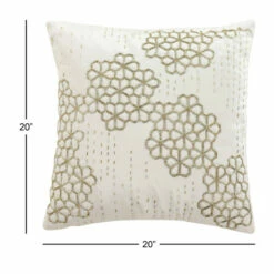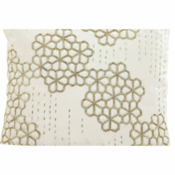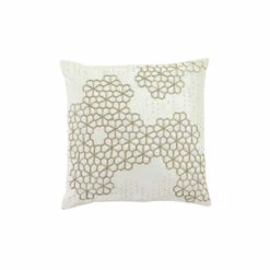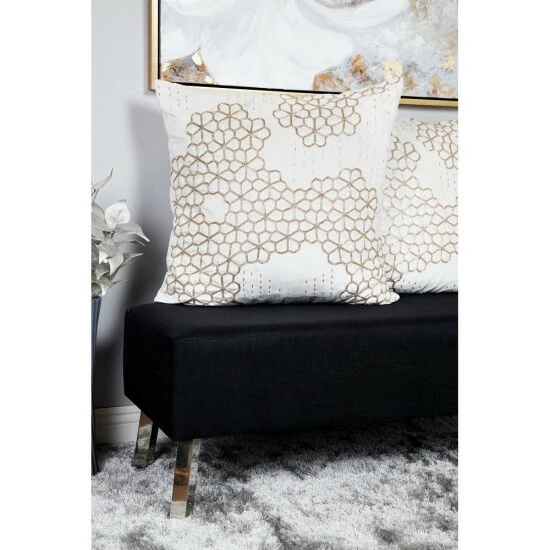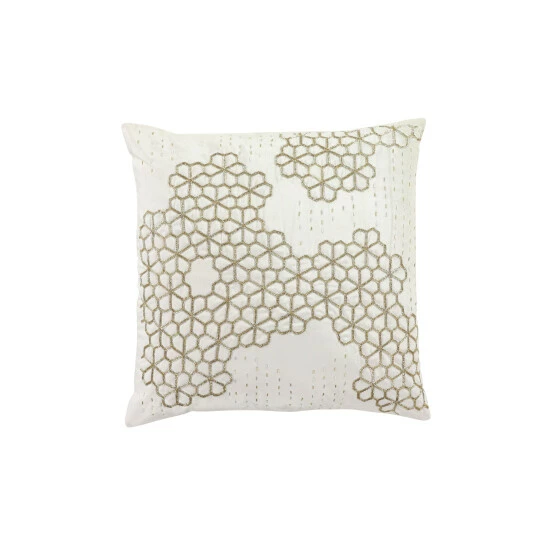 Handmade in India, this elegant throw pillow is deeply luxurious in both look and feelโฆ Crafted with a white-colored velvet fabric, this soft pillow emanates a classy, subtle sheen with svelte texture. Metallic gold bugle beads are embroidered in a honeycomb design with silver chain outlining the patterns, creating another layer of rich, sparkling texture along with a fun modern decor pattern. Random gold and silver bugle beads are vertically speckled between the honeycombs, resembling rain. These velvet beaded pillows are very soft to the touch, and the interior cushion is dense yet soft, keeping its plump shape and providing relaxing, comfortable support.