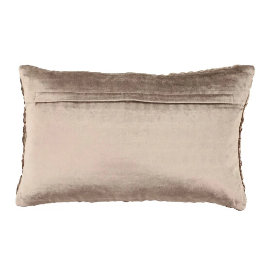 Handmade in India, these elegant throw pillows are deeply luxurious in both look and feel… Crafted with a light coffee brown-colored velvet fabric, this soft pillow emanates a classy, subtle sheen with svelte texture. Smooth smocked loops create a vertical braid pattern, adding another layer of rich dimensional texture with a traditional decor look. These velvet pillows are very soft to the touch and the interior cushion is dense yet soft, keeping its plump shape and provides relaxing, comfortable support. Great as decorative pillows for your bed and stunning large pillows for your couch.