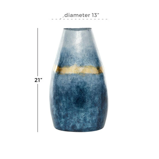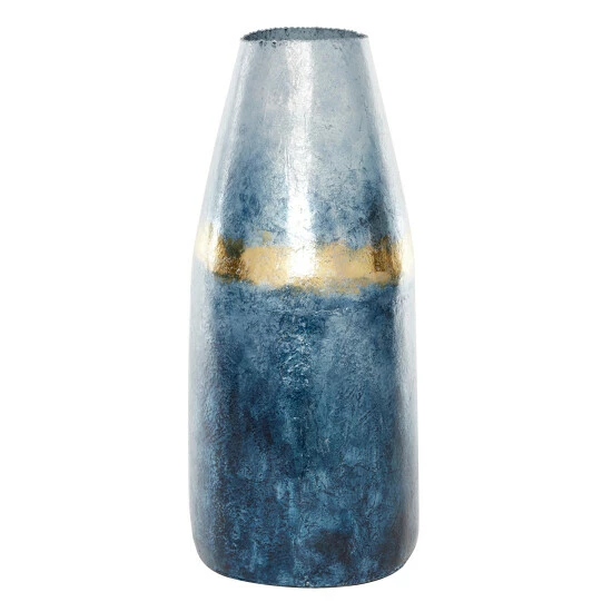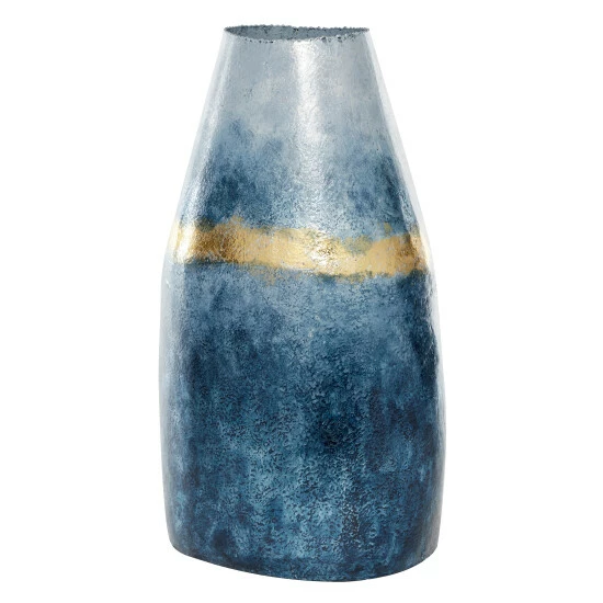 - This glass and aluminum vase features varying shades of blue and deep gold in a textured finish for a modern look; great as a stand alone vase or to hold décor items