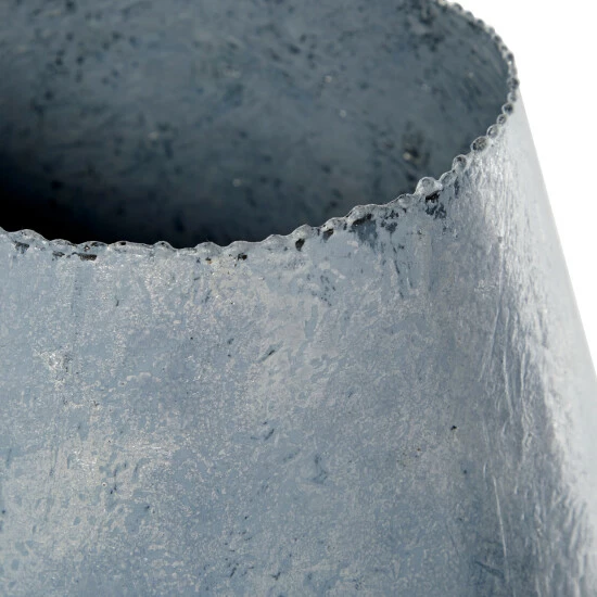 - This blue decorative blue vase is made from hand-cut glass and cast aluminum