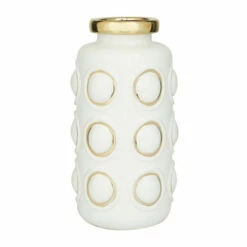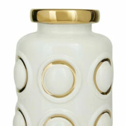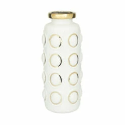 - Metallic Gold and glossy white finish flaunts this ceramic decorative vase