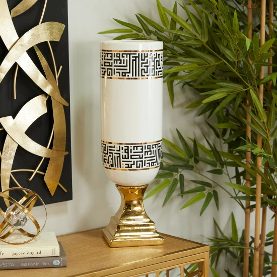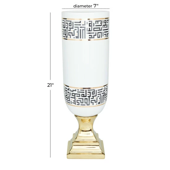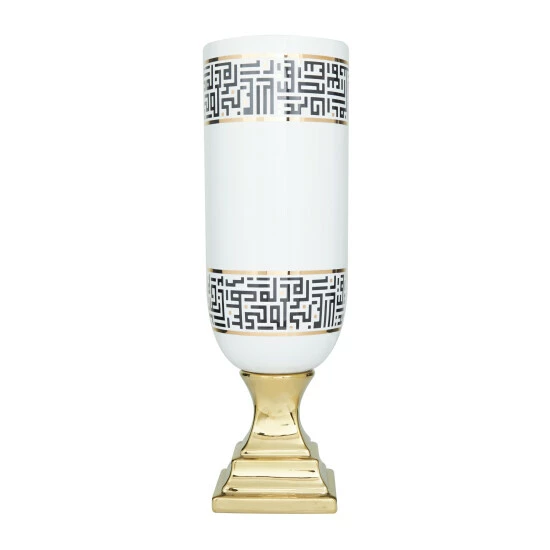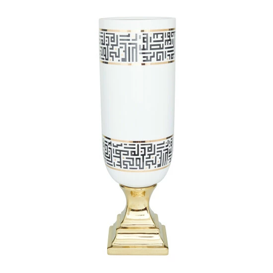 - This glam decorative vase comes in a white exterior with black details along with a gold stand