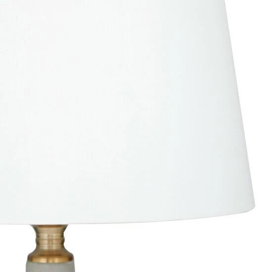 - Decorative table lamp with white and gold finishes perfect for a modern-inspired home