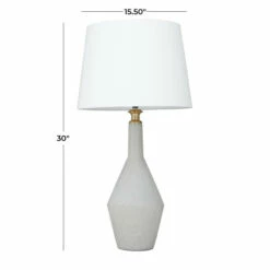 A white bottle-inspired table lamp that brings charm and a modern appeal to any room for an instant decor upgrade. This eye catching lamp makes a charming and chic addition to your surface space and beautifully illuminate its surrounding area. Bring a finishing touch to your home with an inviting appeal with this accent table lamp. Designed with black stopper at the base that prevent sliding around as well as scratching any surface. Comes with 1 socket for medium-sized E26 bulb. Bulb included. Item ships in 1 carton. Cord length measures approximately 60″. Suitable for indoor use only. An accent piece featuring a white polyester drum-shaped shade. Comes with an on/off toggle switch. Modern Inspired.