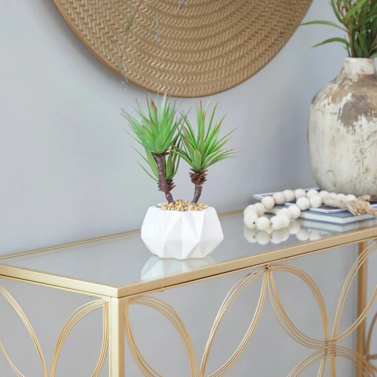 This potted artificial succulent plant adds a touch of naturalistic greenery and blooming spring to indoor settings. Use it as an accent piece in the living room or by the hallway console dresser. Make a statement with this unique decor on mantle, console table or in any living space. Add some greenery to your decor with no keep up effort with these artificial foliage. This item comes shipped in one carton. This artificial succulent inspired plant are made of silk in a pot comes in a ceramic vase measuring 5. 37″D x 3″H. Suitable for indoor use only. Contemporary theme.