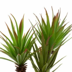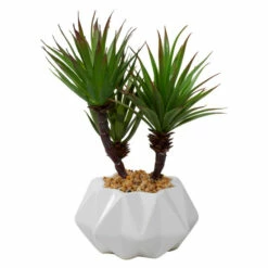 - This artificial succulent plant carries matte green leaves with red tips and brown stems and a diamond-faceted white vase