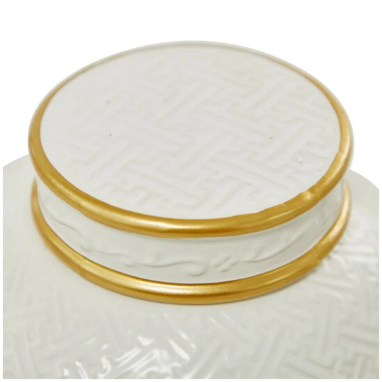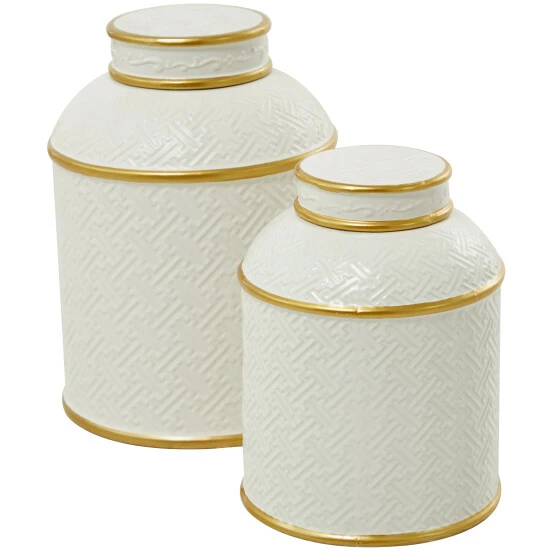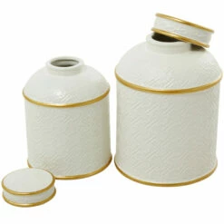 - Hammered white and polished gold finish complete the overall design of this ceramic jar set