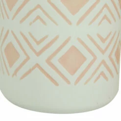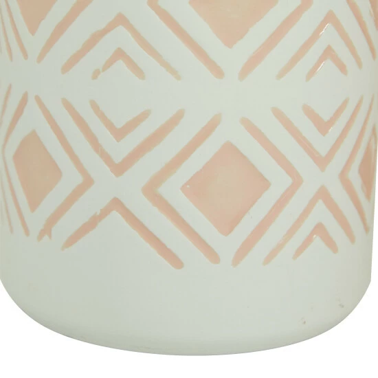 - This ceramic vase set features a fresh aesthetic with its pink geometric patterns on its cylindrical body