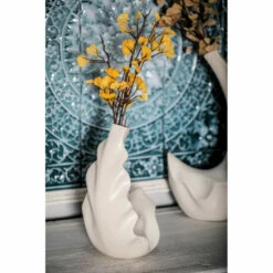 Enhance your living space with this modern ceramic vase from Studio 350. Featuring a curved medium C-shaped body with a smooth white finish, this ceramic vase would make a great accent piece to your home interior. Place it on any even surfaces and adorn it with your favorite floral embellishments for an exceptional look. Crafted from 100% ceramic material, this flower vase that guarantees a lasting quality. Purchase this elegant piece today!