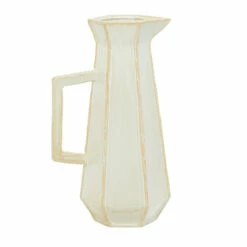 - Glossy eggshell white finish with warm beige vertical glaze accents