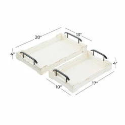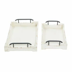 Ideal complement to vanilla and natural-toned tables and consoles. This item ships in 1 carton. Please note that this item is for decorative purpose only and is not food safe. Suitable for indoor use only. Each set includes with 2 trays. Vintage style.
