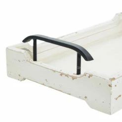 - Features distressed ivory white finish