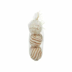 These coastal style inspired design dried natural decorative balls will work its magic in trays or bowls in your living room on tables or shelves, or in your bedroom as supplementary decor in transparent vases or jars. Add color and textured to any vase or decorative bowls with these fillers to enhance your living space. Make a statement with this unique decor on mantle, console table or in any living space. This item comes shipped in one carton. Packed in clear bags with brown raffia ribbons. Due to the handmade nature of this item, no two will be alike, there will be slight differences in shape, size, and color. Suitable for indoor use only. Made in India. Each set comes with 3 bags of dried decorative pieces. Coastal theme.