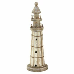 - This unique sculpture set features a lighthouse design complete with two 3 tower levels and 2 tiers of 360 degree balcony views for the light to shine from