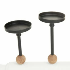 - Wood is sculpted and iron posts are attached into the base for a remarkable kitchen candle holder design