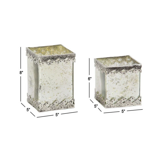 Delight your guests and make any occasion extra special by adding a lighted or flameless candle to this candle holder centerpiece. Made with a sturdy base, it is perfect for creating an elegant atmosphere at your table top or mantel. This nifty set of glass candle holders are ideal for both light & dark-tones spaces that attract natural light. Suitable for indoor use. This item comes shipped in 1 carton. Suitable for indoor use. Made in India. Each set comes with 2 candle holders, candles not included. Glam Design. Each candle holder can accommodate 1 pillar candle.