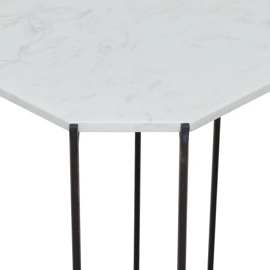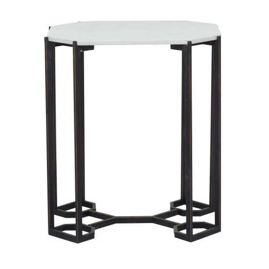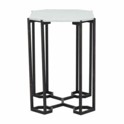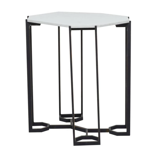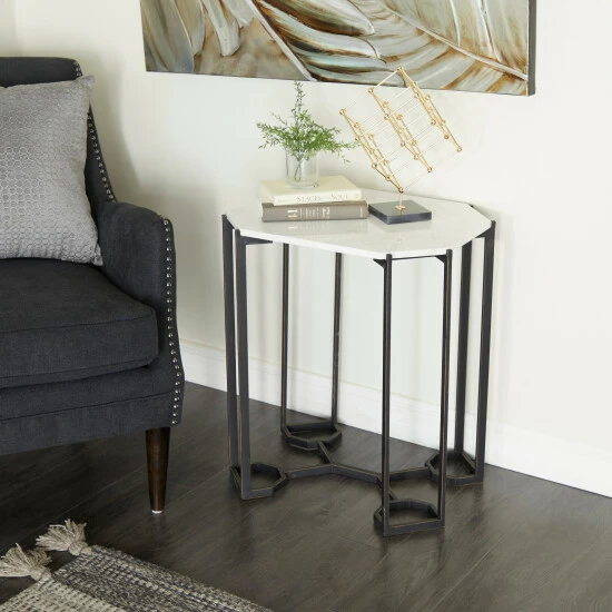 - A mod and chic style flaunts this black and white table with geometric stone top and metal leg stand