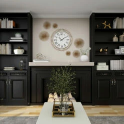 - Comes with a black finish on the Roman numeral hour markers and the bar line minute markers.