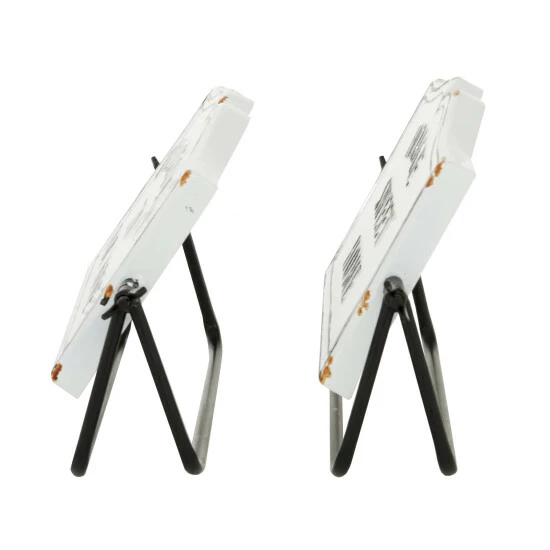 - Comes with a stylish, matted black, ‘swing-style’ standee