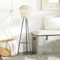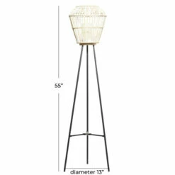 Delight your guests and make any occasion extra special by adding a lighted or flameless candle to this lantern. Made with a sturdy base, it is perfect for creating an elegant atmosphere at your table top or mantel . Set this elegant lantern in your coastal style inspired rooms to create the perfect mood lighting. Designed with a stable metal tripod leg. Designed with black rubber stoppers at the base that prevent scratching furniture and table tops, as well as sliding around. Floor lantern candle holder can hold 1 candle. This item ships in 1 carton. Suitable for indoor use only. Farmhouse-themed style.