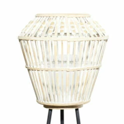 - The lantern body is jar-shaped with a wide upper body forming the equator of wooden slats forming a grill silhouette for better illumination