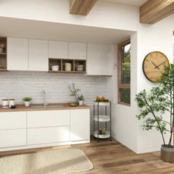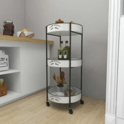 - This rolling cart features 3-tier storage shelves with embossed details over the powder white finish