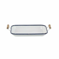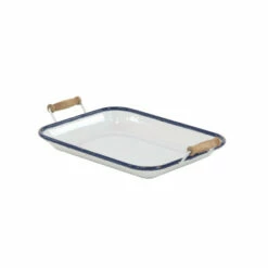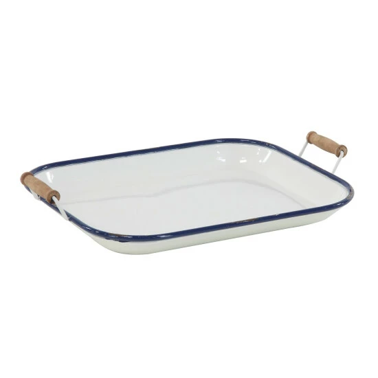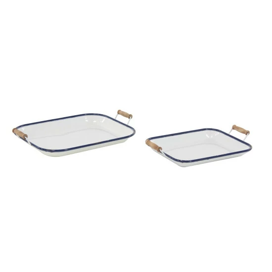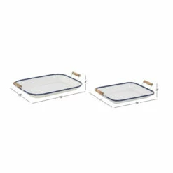 Use as a serving tray or as a dรฉcor holder on your coffee, console, and kitchen tables for a useful decorative piece. Whether in your kitchen, or on your coffee table, it’s a great way to display and store your favorite things. Organize your console and coffee tables with style and utmost care using these versatile trays. Suitable for indoor use only. Each set comes with 2 trays. Farmhouse design. Please note that this item is for decorative purpose use only and are not food safe.This item ships in one carton