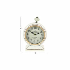 - Set of 2 metal clocks measure 6″L x 3″W x 9″H and weigh 2 lbs each