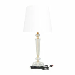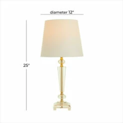 Illuminate the corners of your master bedroom by displaying this endearing crystal buffet lamp on your bedside table or vanity area Brighten up any room to create a warming atmosphere for you and your guests with this chic buffet lamp. A practical yet stylish upgrade that instantly elevate the look of your room. This item comes shipped in one carton. This buffet lamp features a drum shaped linen shade. This buffet lamp features a bulb on/off switch. Traditional style. Suitable for indoor use.. A traditional inspired designed for classic harmony full of friendly charm. This crystal lamp is made of high quality iron, linen fabric, and crystal. This lavish crystal bedside lamp features a clear crystal finish with an inner gold body and a solid white lamp shade. This extravagant buffet lamp showcases a drum lamp shade with a round and triangular crystal body design and an inner gold metal base. This item measures 12″L x 12″W x 25″H and weighs 6 lbs