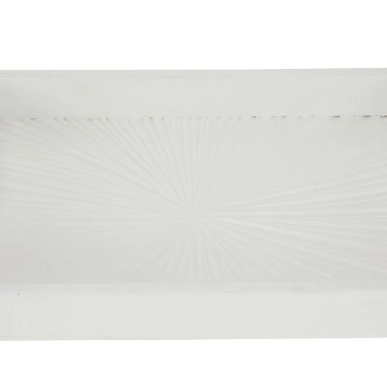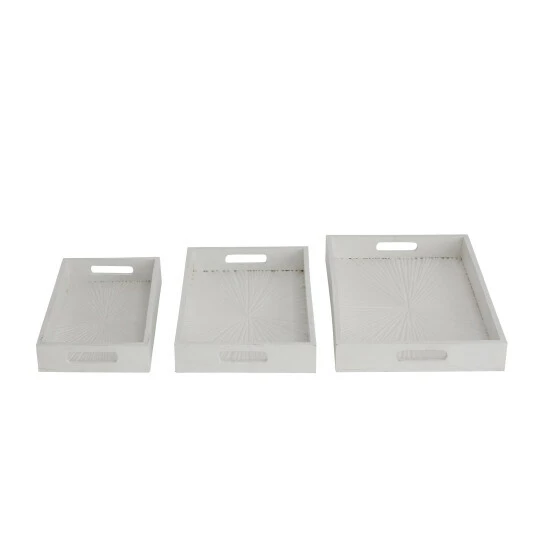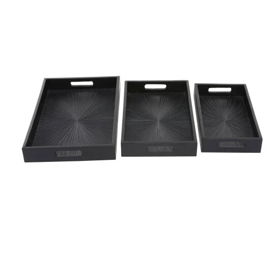 - Starburst carvings embellish the interior plate of these 3 wooden trays that add eccentric style and texture