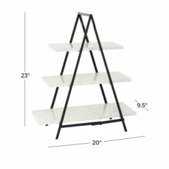 A elevated tiered server that you can store your small decorative goods, trinkets or even jewelry in your dining room, living room or bedroom. Let this tiered server provide a sense of style and function to your home by displaying fruit, napkins, bread, or even corralling clutter. Whether in your kitchen, or on your coffee table, it’s a great way to display and store your favorite things. This item comes shipped in one carton. Suitable for indoor use only. Marble is a product of nature and no two pieces are exactly alike, it is prone to variations in color and/or patterns in the material that adds to the beauty and charm of the piece. Made in India. Contemporary theme.