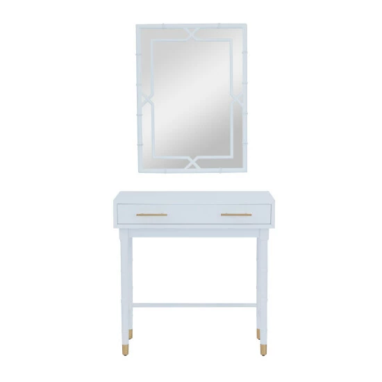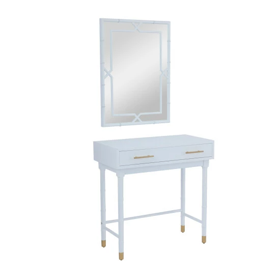 Bring a finishing touch to your home with an inviting appeal with this console table with mirror. Useful and elegant, console tables are more than just a place to throw your mail. Create a charming furniture pairing with this console table and wall mirror set design and place them against light-toned backgrounds for an absolute visual delight. Designed with black rubber stoppers at the base that prevent scratching furniture and table tops, as well as sliding around. This item ships in 1 carton. This item comes with a loop metal hardware at the back for easy hanging via nail or screw. Suitable for indoor use only. Maximum weight limit is 100 lbs.. This item comes as a mirror and table set. Traditional style.