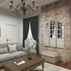 - These windowpane style wooden wall mirrors highlight rectangular frames with arched tops