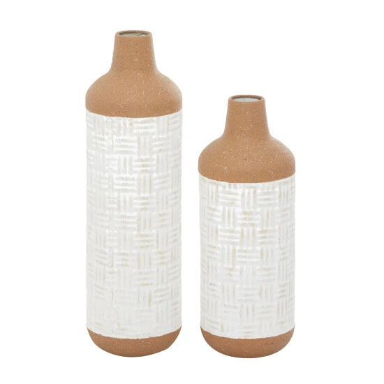 The best way to maximize your wall space and add some personality to living space. Appreciate their design best against solid-colored backgrounds in bohemian settings. They make great unique decor on mantle, console table or in any living space. This item ships in one carton. Suitable for indoor use only. Each set comes with 2 vases. Tapered neck cylinder vases with 3″ wide rim openings. Bohemian theme.