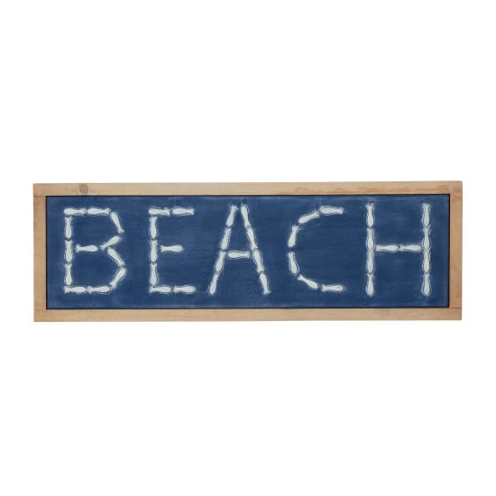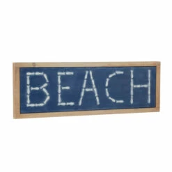 Add a fresh look to the walls of your home with this beach sign wall decor that adds laidback coastal vibe. Create a balanced space in the most creative way with this expertly crafted wall décor for captivating focal point. Bring a finishing touch to your walls with an inviting appeal with this beautifully crafted wall decor. Shipped in one carton. Furnished with 2 keyhole hooks for easy hanging. Coastal design. Showcases ‘BEACH’ typography in fish-shaped repousse metalwork. A great versatile decor for indoor or outdoor display but are not rust or weather resistant.